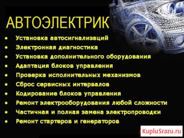 Диагностика и ремонт электрооборудования любой сложности. Компьютерная диагностика, корректировка одометров, обнуление Сrach Data в блоках SRS, программирование чип-ключей, прошивка ЭБУ авто. Установка и ремонт сигнализаций. Установка дополнительного электрооборудования. Ремонт стартеров и генераторов.
